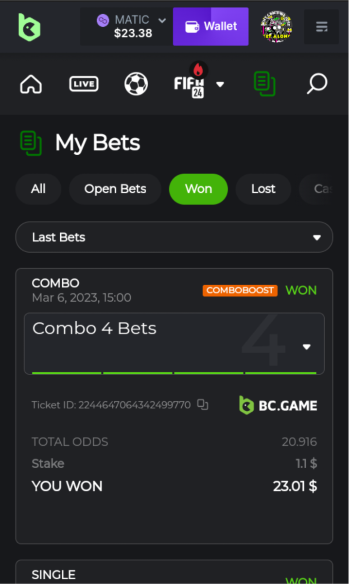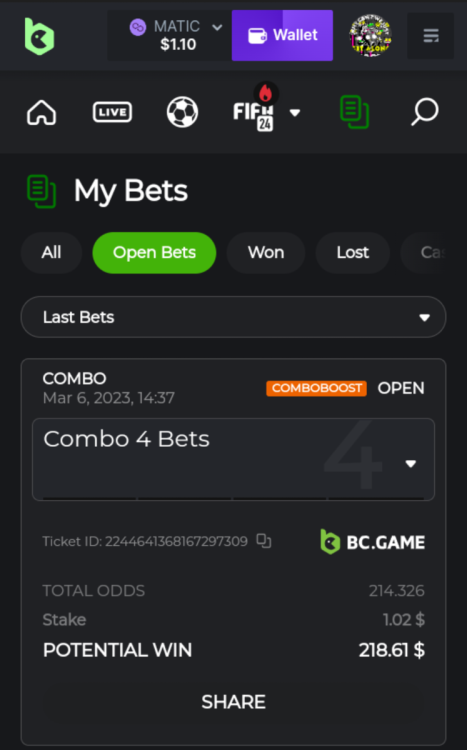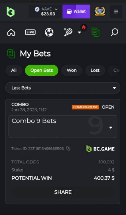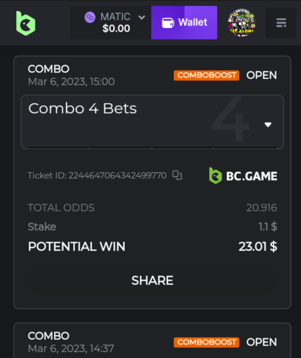 12. I think I was too tired and made the wrong bets with different sites.... haha Heres my losing ticket on bc... but bet nft somewhere else. Lol and I must of bet this not thinking its bc games haha