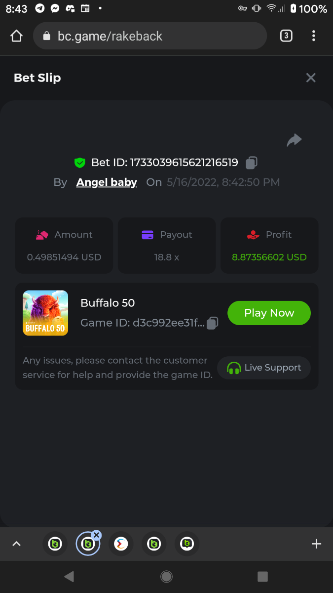 10. https://bc.game/sd/?sd=10JOT8ZLYJ3TAR Not sure why it says amount is .099 my bet is set to 10 cents.