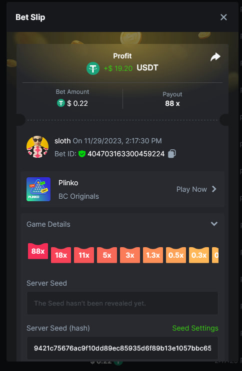 Total Points 30/30 EASY 1 https://bc.game/#/sd/11VO77GATVCCXF 2 https://bc.game/#/sd/11VO36FOYPH48V 3 https://bc.game/#/sd/11VKFQKFWOAMU7 4 https://bc.game/#/sd/11VKM1H288HRNB 5 https://bc.game/#/sd/11VKG5J0NO13JB 6 https://bc.game/#/sd/11VKLQZGL749P7 7 bet id 2388541117525266478 8 https://bc.game/#/sd/11VKH3DCZZR72Z 9 https://bc.game/#/sd/11VKHRDODKPPY3 10 Both done. MEDIUM 1 https://bc.game/#/sd/11VKEFPNPAVZIZ 2 https://bc.game/#/sd/11VKDDJO482EBN 3 https://bc.game/#/sd/11VKE9CI6RTUE7 4 bet id 2388491552407298304 5 https://bc.game/#/sd/11VJN7D9T73JFR 6 https://bc.game/#/sd/11VKERZ2NQWVER 7 * There is a problem with blackjack bet slips. all of the bets in history shows as 0 value in bet slip.blackjack hand is visible at bet slip game info ss .i also added ss of bill showing the bet with game id. bet is 2 bcd. Thank you https://bc.game/#/sd/11VOQRXMFX4X27 8 https://bc.game/#/sd/11VLQJAKYSW9P7 9 https://bc.game/#/sd/11VLS5NLHTDLWB 10 https://bc.game/#/sd/11VLWDXNBYDIRB HARD 1 https://bc.game/#/sd/11VJO4ADTOF1NJ 2 https://bc.game/#/sd/11VMPUDVWNOGCN 3 https://bc.game/#/sd/11VMKBWDTF65NF 4 https://bc.game/#/sd/11VOIUG63W4GGV 5 https://bc.game/#/sd/11VO9PCVEW7R4B 6 https://bc.game/#/sd/11VOO6VJNW78Y3 7 https://bc.game/#/sd/11VMKUB6AK9HJ7 8 https://bc.game/#/sd/11VODUXB33W0GV 9 https://bc.game/#/sd/11VOH4GG3LZ55Z 10 bet id 2385379590152524000