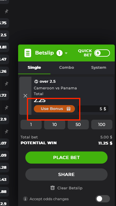 Reminder: Log in to your sportsbook page, and make sure your currency chooses “BCD/USDT." To those who are unable to receive the pop-up messages & bonuses tab, try switching to your recent currencies used for betting. (XRP, DOGE , ETH, etc etc etc) Freebet is based on one-time use; the amount of bet using free bet tickets cannot be changed. Once used, please wait for the game's outcome. _______________________________________________________ Step 1 : How to claim/check? Once you open the sportsbook page with BCD/USDT currency, the "freebet" pop-up message will show immediately. You can click and claim it. If that's no pop-up message, no worries. Please follow the below steps to claim & use it. Open your sportsbook history page, and click on "Bonuses", you can check any available "freebet" ticket in here. So, now you are activated successfully! ___________________________________ Step 2 How to use the "freebet" ticket? Pick the game's odd that is available from the "freebet" description. For example, in the screenshot above, we notice that odd availability in between "2" to "5'. So this is the step : I did pick a 2.25 game's odd to use the "freebet" ticket: So, now you are completed using the “free bet" ticket! Prof Bil wishes you always big win & good luck! _______________________________________________ (You can check your history page to have more bet detail check as usual) ______________________________________________