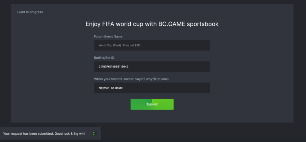 Hola BC.GAME fam, We're based on our goal "Build for Community, Give to Community" to provide our best services to every users. Overall, what we can implement in the site/ make improvements to make you feel P2P2B (Player to Player to BC.GAME) like a big family staying together? We look forward to knowing the feedback from BC.GAME fam, any useful feedback/suggestions are happy to submit. (Language = English only) Giveaway: $10 for every useful feedback/great suggestion. Eligible for all VIP 4 users and above. A pool size maximum of up to $500 bcd for claim Please submit your feedback by clicking here Form closed date: 14 Nov 2022, 06:00 AM UTC $10 will be given for great feedback/suggestions, shitcode will distribute within 3 working days after the form closed. In case you need an example for reference : UID ( 5556667 ) Forum Profile Link ( https://forum.bc.game/profile/135387-bcgame_bil/ ) Device & System ( iPhone 13pro , IOS 16 )(Samsung & Android 11) Feedback/suggestion. ( Need a quick tutorial for new users) Screenshot ( Not mandatory to provide, but it's better if we have your visual, kindly submit it in the BC.GAME forum within this same post. ) Reminder : You can submit the google form W I T H O U T L O G I N gmail account. ENGLISH ONLY