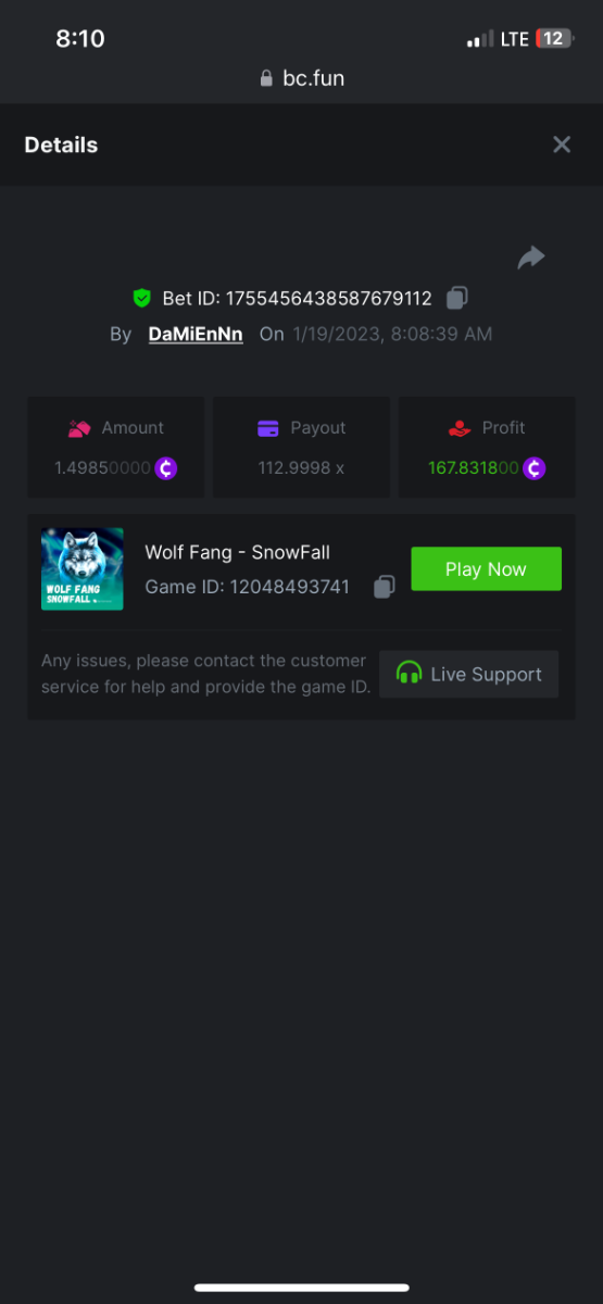 https://bc.fun/#/sd/112DOFUXGU3FGZ 12x $0.30 bet Don’t know if you can use this one because I lost bet link but I post it below anyways Cave Of Plunder-Win 110775826563204949 1/28/2023, 11:53:02 PM 33.60x $0.30 bet - $10.08 win -
