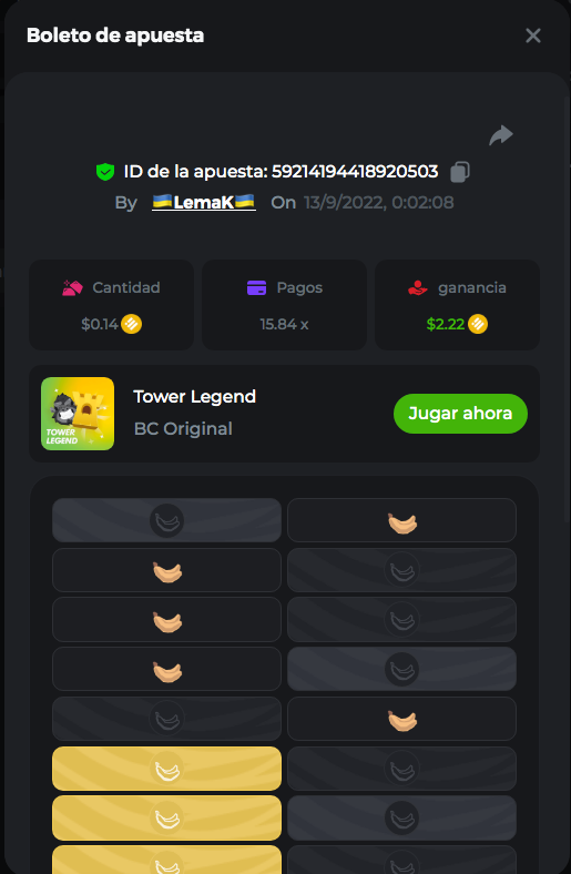 Event Team Niobium Posted September 12, 2022 Event Team Share Posted September 12, 2022 $2.5k Prestige Tower Legend Challenge #46 ♜ Starts: 12, September 8:30pm GMTEnds: 19, September 8:30pm GMT Hello VIPs! Our weekly event is back and better than ever, so get ready to play some Tower Legend! The Top 10 players of the week will receive a major reward, and other participants will also get rewarded for their efforts! But that's not all, anyone who completes the extra bounty will receive an equal share of the $500 prize pool. Come join us, have some fun, and maybe you'll end up at the Top! — More details are given further on. What's the Challenge? Win the highest multiplier you can on BC.Game's in-house game, Tower Legend. (Any difficulty is valid). If there is a tie, the player with the higher average bet amount (in USD) shall be the winner. If there is a tie in the amount and payout, the one who posted or edited his post first will be considered in the Ranking. Minimum VIP There's no minimum VIP level Minimum Payouts Minimum payout to qualify is 15x Minimum Bet Size $0.15 USD equivalent Eligible Coins All cryptocurrencies are eligible (excepting JB) Available Prizes 1st Place....... $500 2nd Place..... $300 3rd Place...... $200 4th Place......$100 5th Place......$50 6th-10th.........$30 All other participants.........$700 Bounty Prize...$500, equal share. EXTRA BOUNTY Post a winning bet with 253.44x multiplier or above and receive an equal share of the $500 prize pool! Original rules apply with all minimum requirements. How to Enter To enter, copy the link of the bet you'd like to submit. Once you've copied it, paste it as a reply to this thread like so: Link: https://bc.game/sd/?sd=10SURLKVEOZRPV In the same post, upload a screenshot of your win by clicking the game ID WITH VIEW IN USD mode ENABLED (accessible at the bottom of dropdown menu for your wallet up top. This way, we can ensure that your bet indeed met the minimum requirement at the time of placing it: Link: https://bc.game/sd/?sd=10SURLKVEOZRPV Please combine all of your hits together in a SINGLE post. Edit your existing post for additional hits, don't create a new post. Each eligible entry must have the Bet Slip URL, failure to include it will disqualify participation in the event. Bet Slip image is not mandatory. Bets must be posted within 24 hours of placing bet in order to keep things fair for everyone. Bets must be made during the specified time window stated above. This thread will lock automatically when the time period is over. One (1) entry per household. Anyone found attempting to win multiple prizes will be disqualified from this challenge as well as all future challenges. Failure to follow instructions will result in your submission being null and void. By entering this challenge, you acknowledge that BC.Game has the final decision on results and placement. Payouts will be made within 72 hours of challenge completion, please be patient, we promise you that we haven't forgotten. We check and double check to make sure the rightful winners receive their prize. Prizes will be paid out in BCD. Good luck everyone! Link to comment Share on other sites More sharing options...