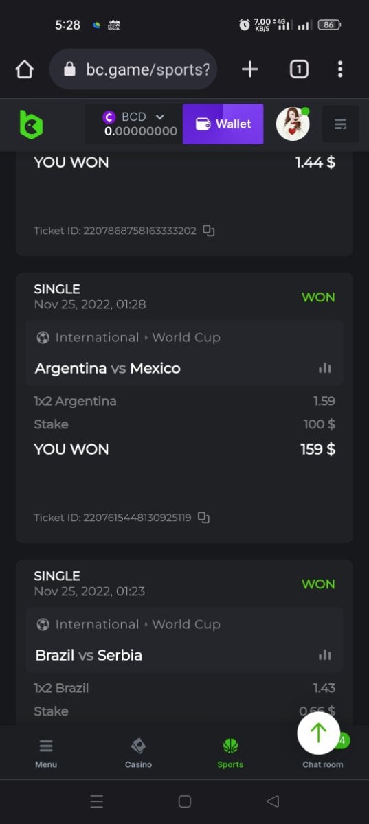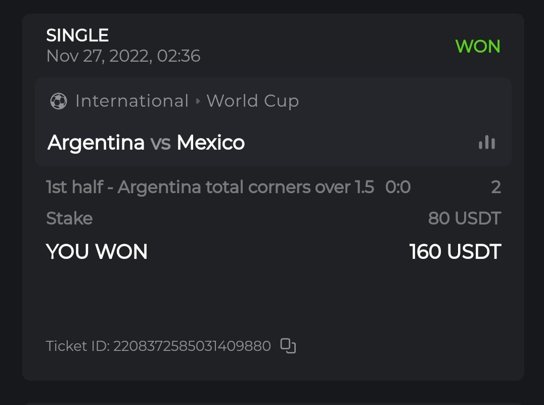BCGame_Ewa Posted November 22, 2022 Share Posted November 22, 2022 (edited)  BET AND WIN AFA JERSEY SIGNED BY MESSI! 🗓 Duration: 24th November - 19th December 00:00 AM UTC 🗓  This World Cup has brought so many giveaways at BC.GAME and to continue this amazing journey we are here with yet another amazing giveaway with Argentina Jersey Personally signed by Lionel Messi! Continue reading below to find out how you can win this amazing jersey!  RULES: Place a bet on any of the match on WORLD CUP 2022 to win this amazing jersey. Player who make a post with highest payout bet will be the winner of a jersey. You can either bet small amount on high odds or big amount on small odds. The highest payout means amount which include stake and profit. Bet has to be placed during promotion period to be valid. Bet will be counted as entry for a day it is settled not placed. There will be one jersey winner per day. Bet result with “win” is valid to submit the ticket id. For multiple valid ticket id submitted, only the highest amount will be entertained. Single, Multis & Combo parlays are  acceptable, but only placed for matches on WORLD CUP 2022.  Minimum VIP Minimum VIP 8 Level and above.  Market available for this promotion All markets are available.  Minimum odds requirement Minimum odds 1.5 (European) and above.  Minimum bet size Equivalent to  5 USD  Eligible currencies All cryptocurrencies are eligible (except JB, BCL)  How to Participate : Post your Ticket ID, along with your ticket id & screenshot, as a reply to this thread as follows. Providing the bet link is not mandatory.  Example for reference : Ticket ID: 2206827573999178156  Payout for this bet is $119 and this amount will be counted as entry for the event. If the selection results in a void or postponement, the ticket ID will not be counted. Cashed out, half win bets are not eligible. Create a SINGLE post. If you get a better result, edit your existing post  don't create a new post. Bets must be placed & settled during the time window specified above. This thread will automatically lock when the time period ends. One (1) entry per family. If someone attempts to claim multiple prizes, they will be disqualified from the challenge as well as all future challenges. This may also result in account termination. Failure to follow the instructions will result in the cancellation of your submission. By entering this challenge, you acknowledge that BC.GAME has final decision rights over results and placement. Winners will be contacted with 72 working hours at the end of event  Good luck! You can place your bets here.   Edited November 24, 2022 by BCGame_Ewa 9 Link to comment Share on other sites More sharing options...