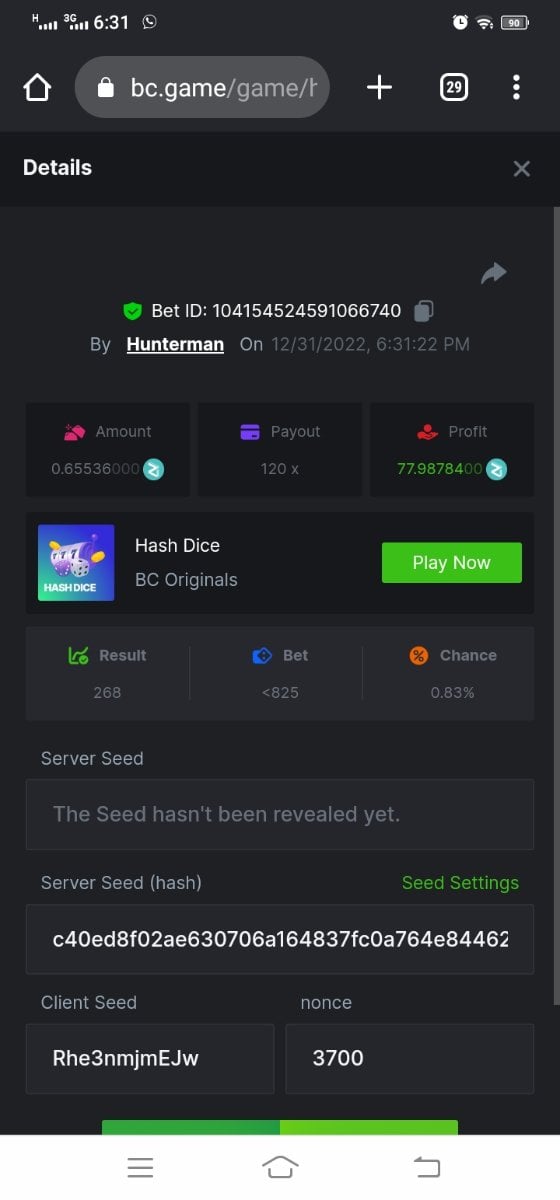 RisingStarGws Posted December 31, 2022 Share Posted December 31, 2022 https://hash.game/#/sd/110DYPT0JM2N0Z uid 3292213 Link to comment Share on other sites More sharing options...