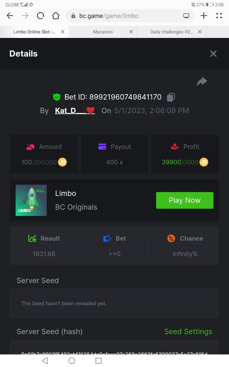 Maksypro Posted May 1, 2023 Share Posted May 1, 2023 Read Carefully Before Start To Hunt Daily Challenges #222 LIMBO Hunt : Win the highest multiplier Min Payout requirement X100 Min Level 4 ๏ธDuration Starting : Now End time : 23.59 UTC Time How to Join? Make screenshot + paste your bet link + UID or Profile link Mini bet amount - 0.01$ Any coin allowed Reward Prizes 1st Place........$7 BCD 2nd Place.....$5 BCD 3rd Place.....$4 BCD 4th Place.....$3 BCD 5th Place.....$2 BCD ๐ต Winners will be announcing next day after Roll Point! Link to comment Share on other sites More sharing options...