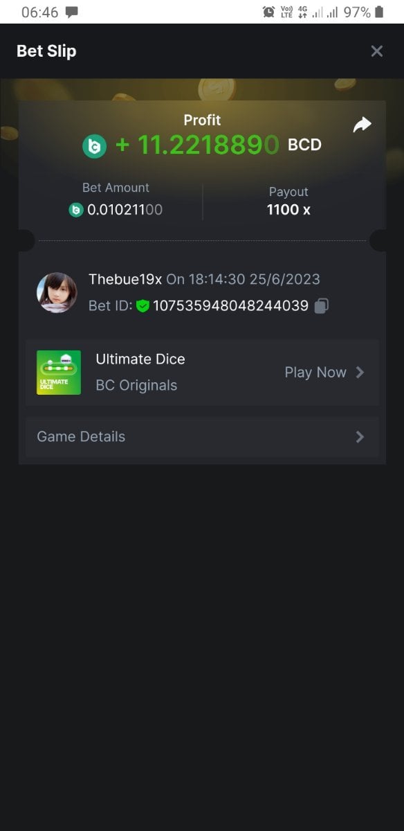 Maksypro Posted June 25, 2023 Share Posted June 25, 2023 Read Carefully Before Start To Hunt Forum Daily Challenges #277 Ultimate dice Hunt : Win the highest pay out Min Payout requirement 50x Min Level 4 ️Duration Starting : Now End time : 23.59 UTC Time How to Join? Make screenshot + paste your bet link + UID or Profile link Any coin, with min bet 0.01 USD is allowed (jb/bb/bcl not allowed) Reward Prizes 1st Place.....$7 BCD 2nd Place.....$5 BCD 3rd Place.....$4 BCD 4th Place.....$3 BCD 5th Place.....$2 BCD 🏵 Winners will be announcing next day after Roll Point! 1 Link to comment Share on other sites More sharing options...