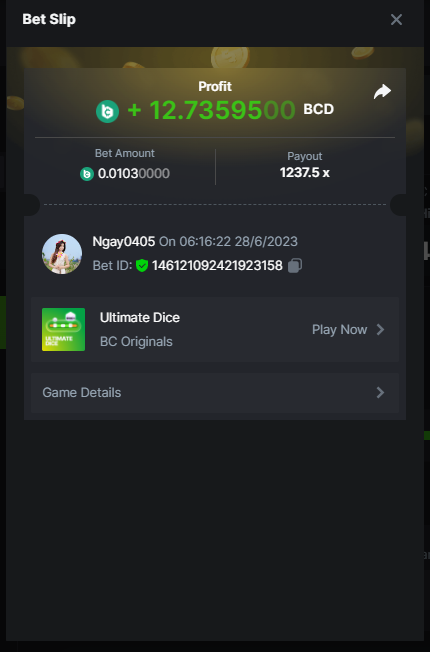 Maksypro Posted June 27, 2023 Share Posted June 27, 2023 Read Carefully Before Start To Hunt Forum Daily Challenges #279 Ultimated Dice Hunt : Win the highest pay out Min Payout requirement 30x Min Level 4 ️Duration Starting : Now End time : 23.59 UTC Time How to Join? Make screenshot + paste your bet link + UID or Profile link Any coin, with min bet 0.01 USD is allowed (jb/bb/bcl not allowed) Reward Prizes 1st Place.....$7 BCD 2nd Place.....$5 BCD 3rd Place.....$4 BCD 4th Place.....$3 BCD 5th Place.....$2 BCD 🏵 Winners will be announcing next day after Roll Point! 1 Link to comment Share on other sites More sharing options...