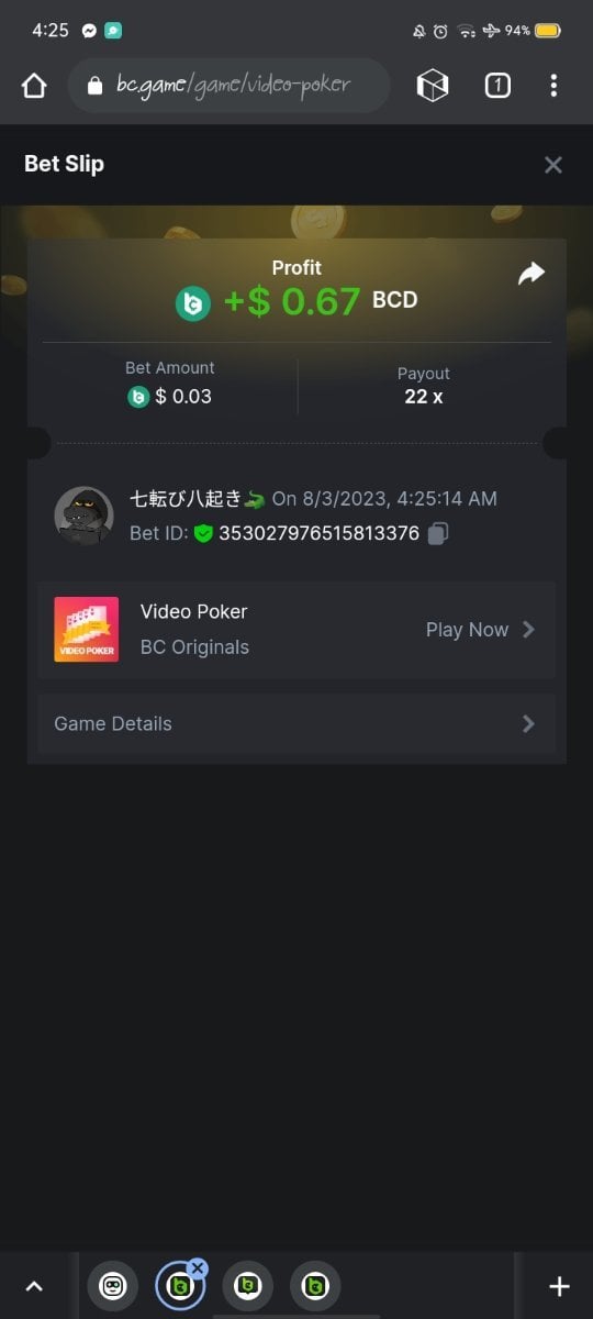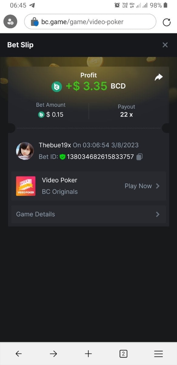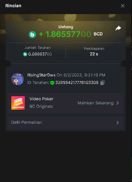 WK_ Posted August 2, 2023 Share Posted August 2, 2023 4 hours ago, Kikikom said: Read Carefully Before Start To Hunt Forum Daily Challenges #315 video poker Hunt : Win the highest pay out Min Payout 6x Min Level 4️Duration Starting : Now End time : 23.59 UTC Time How to Join? Make screenshot + paste your bet link + UID or Profile link Any coin, with min bet 0.01 USD is allowed (jb/bb/bcl not allowed)Reward Prizes 1st Place.....$7 BCD 2nd Place.....$5 BCD 3rd Place.....$4 BCD 4th Place.....$3 BCD 5th Place.....$2 BCD 🏵 Winners will be announcing next day after Roll Point! https://hash.game/#/sd/11F4L4FNVGN5EB UID: 1884076 Link to comment Share on other sites More sharing options...