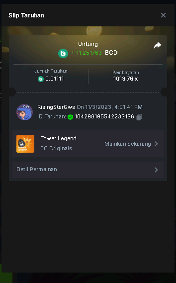Moderator Giandreas Posted November 3, 2023 Moderator Share Posted November 3, 2023 (edited) Read Carefully Before Start To Hunt Forum Daily Challenges #407Hunt : Tower Legend Win the highest pay out Min Payout : 13x Min Level 4️Duration Starting : Now End time : 23.59 UTC Time How to Join? Make screenshot + paste your bet link + UID or Profile link Any coin, with min bet 0.01 USD is allowed (jb/bb/bcl not allowed)Reward Prizes 1st Place.....$7 BCD 2nd Place.....$5 BCD 3rd Place.....$4 BCD 4th Place.....$3 BCD 5th Place.....$2 BCD 🏵 Winners will be announcing next day after Roll Point! Edited November 3, 2023 by Kikikom 2 Link to comment Share on other sites More sharing options...