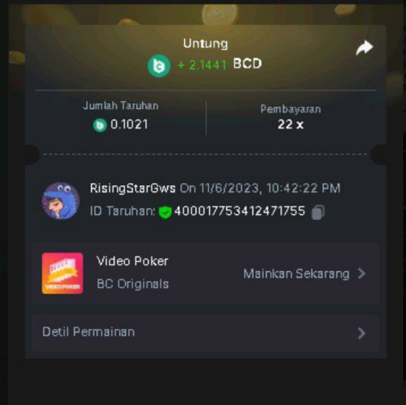 5th place . . . .  2$ BCD  - RisingStarGws - 22x  2.14