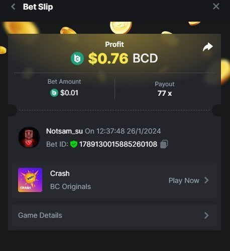 Moderator Giandreas Posted January 26, 2024 Moderator Share Posted January 26, 2024 Read Carefully Before Start To Hunt Forum Daily Challenges #491Hunt : Crash Win the highest pay out Min Payout : x20 Min Level 10️Duration Starting : Now End time : 23.59 UTC Time How to Join? Make screenshot + paste your bet link + UID or Profile link Any coin, with min bet 0.01 USD is allowed (jb/bb/bcl not allowed)Reward Prizes 1st Place.....$7 BCD 2nd Place.....$5 BCD 3rd Place.....$4 BCD 4th Place.....$3 BCD 5th Place.....$2 BCD 🏵 Winners will be announcing next day after Roll Point! 1 Link to comment Share on other sites More sharing options...