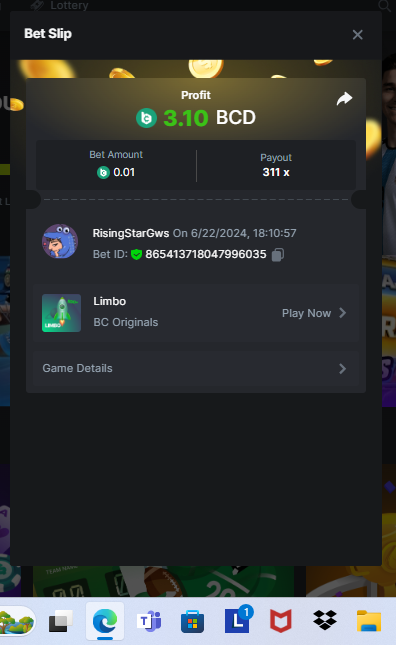Moderator Giandreas Posted June 22, 2024 Moderator Share Posted June 22, 2024 Read Carefully Before Start To Hunt Forum Daily Challenges #639Hunt : Limbo Win the highest pay out Min Payout : 20 Min Level 10 ️Duration Starting : Now End time : 23.59 UTC Time How to Join? Make screenshot + paste your bet link + UID or Profile link Any coin, with min bet 0.01 USD is allowed (jb/bb/bcl not allowed) Reward Prizes 1st Place.....$7 BCD 2nd Place.....$5 BCD 3rd Place.....$4 BCD 4th Place.....$3 BCD 5th Place.....$2 BCD 🏵 Winners will be announcing next day after Roll Point! 1 Link to comment Share on other sites More sharing options...