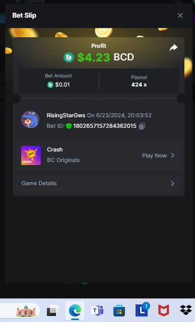 Moderator Giandreas Posted June 23, 2024 Moderator Share Posted June 23, 2024 Read Carefully Before Start To Hunt Forum Daily Challenges #640Hunt : Crash Win the highest pay out Min Payout : 20 Min Level 10 ️Duration Starting : Now End time : 23.59 UTC Time How to Join? Make screenshot + paste your bet link + UID or Profile link Any coin, with min bet 0.01 USD is allowed (jb/bb/bcl not allowed) Reward Prizes 1st Place.....$7 BCD 2nd Place.....$5 BCD 3rd Place.....$4 BCD 4th Place.....$3 BCD 5th Place.....$2 BCD 🏵 Winners will be announcing next day after Roll Point! Link to comment Share on other sites More sharing options...