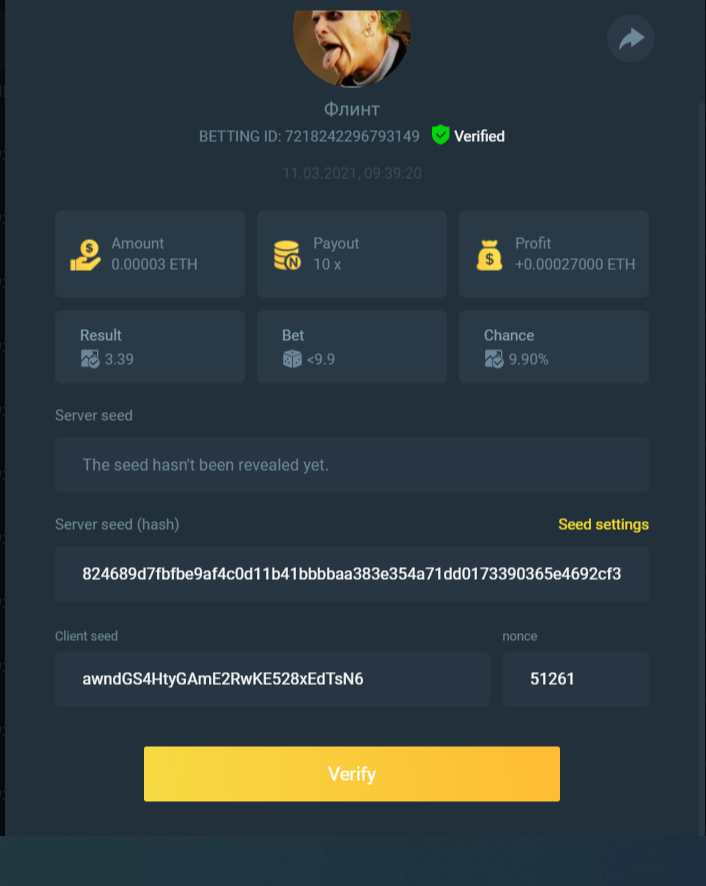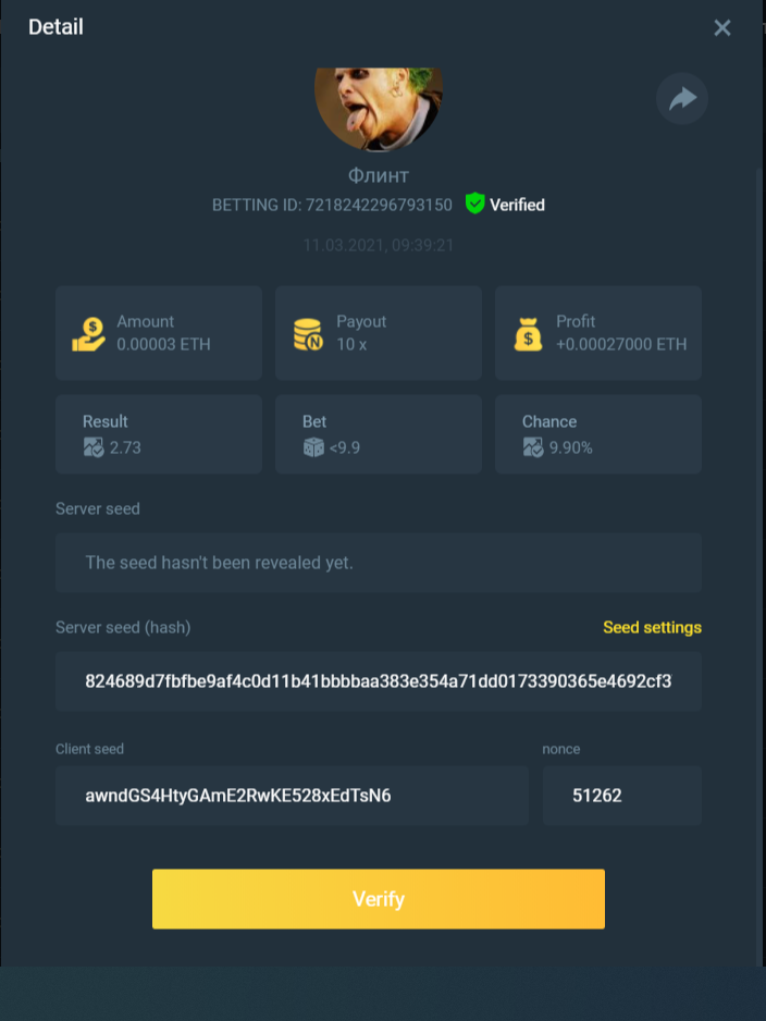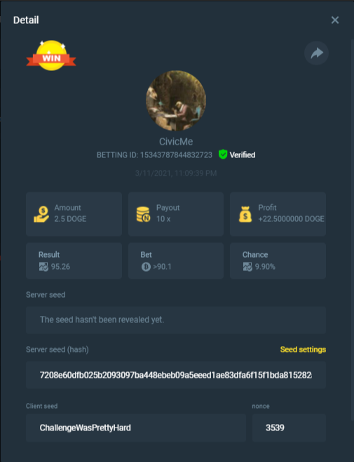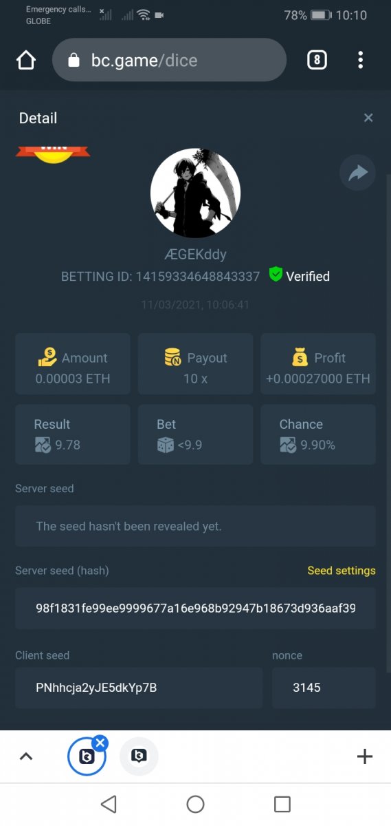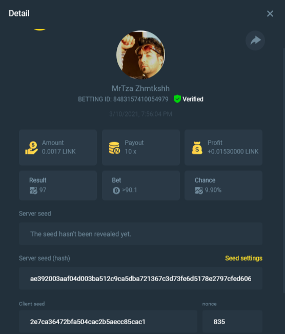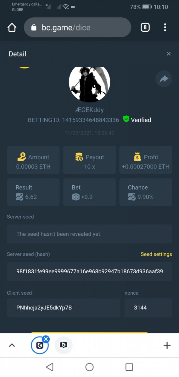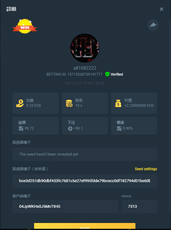 截圖中的 nonce 必需是連續的,截圖中需包含 betting id 以利驗證。