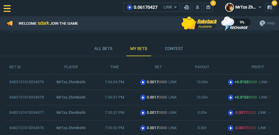 The higher the streak will determine the winners and also the comment timings for example 4 people get 5 times the bet win then the first 3 will get rewards.