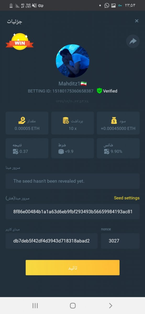 از تصویر صفحه جزئیات شرط بندی را بگیرید و با آن به این موضوع پاسخ دهید.
